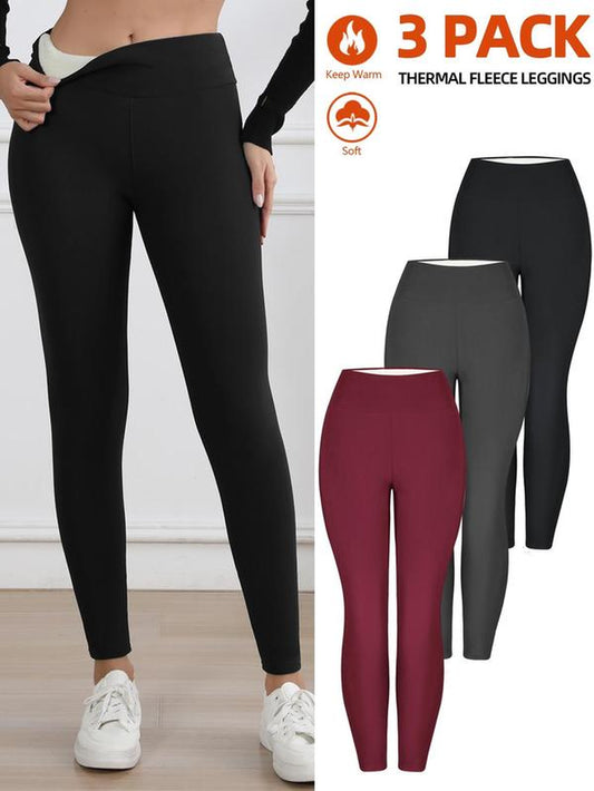 CHRLEISURE 1/3PCS Winter Thick Warm Fleece Lined Leggings for Cold Weather High Waist Women'S Cozy Workout Wear Fleece Pants for Yoga Riding Casual Wear